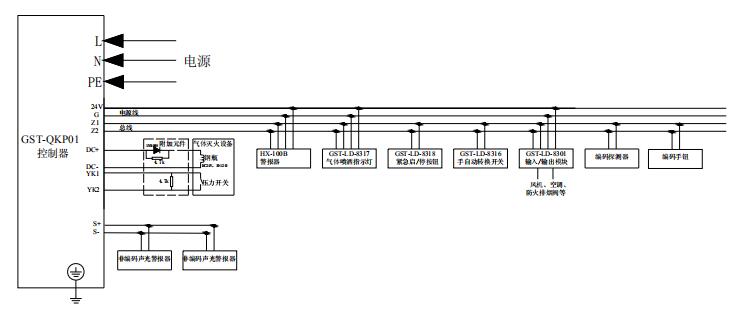 GST-QKP01氣體滅火控制器聯(lián)網(wǎng)示意圖
