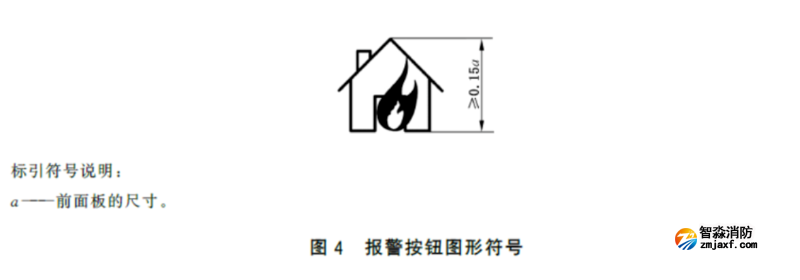 3.7.3.2.1宜在報(bào)警按鈕前面板的上部居中標(biāo)注如所示的圖形符號(hào)或起同等作用的文字,符號(hào)和文字應(yīng)為白色。