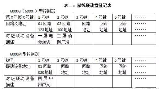 4.如果有多塊總線聯(lián)動盤,也如上填寫,寫明第幾塊,需通過聯(lián)動鍵盤聯(lián)動控制的全部寫全,見表二。