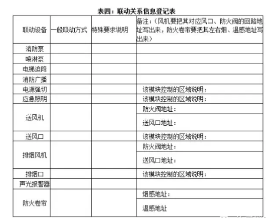 聯(lián)動關(guān)系簡要說明表,如有特殊要求寫明,請在備注內(nèi)把要求內(nèi)容填全。要把所有聯(lián)動控制設(shè)備一一羅列出來。