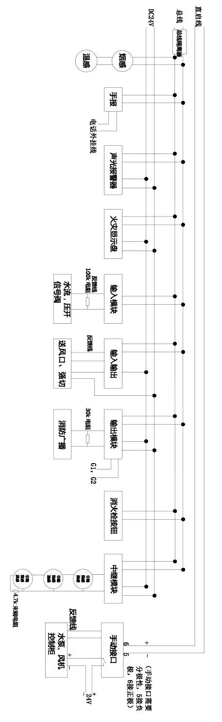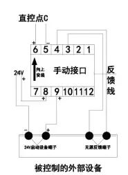 5. 手動接口為多線模塊,不用編碼,主機上的每個直控點都對應一個手動接口,直接從主機布線到現(xiàn)場中間不連接任何設備,5、6端子要分極性