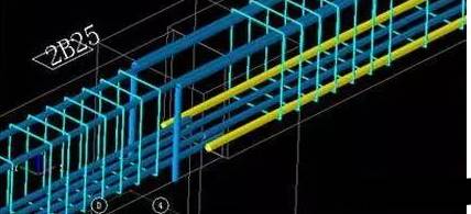 ⑷ 2Φ25 + 3Φ22(-3)/ 5Φ25 表示有兩排筋,上排筋為5根。2Φ25伸入支座,3Φ22,不伸入支座。下排筋 5Φ25,通長(zhǎng)布置。