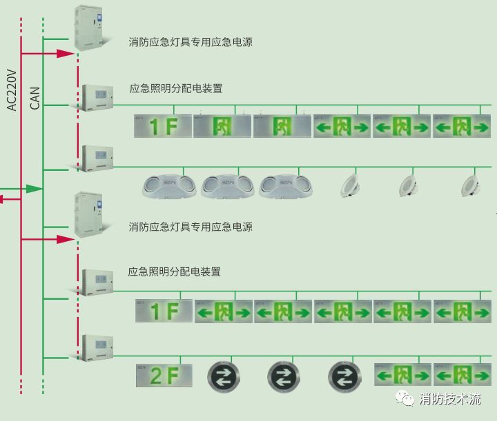 智能應(yīng)急照明和疏散指示系統(tǒng),即集中電源集中控制系統(tǒng),由應(yīng)急照明和疏散指示控制器、樓層分配電裝置、消防應(yīng)急燈具、疏散指示燈具等組成。根據(jù)《消防應(yīng)急照明和疏散指示系統(tǒng)技術(shù)標(biāo)準(zhǔn)》GB51309-2018規(guī)定,設(shè)置消防控制室的場(chǎng)所應(yīng)選擇集中控制型系統(tǒng);設(shè)置火災(zāi)自動(dòng)報(bào)警系統(tǒng),但未設(shè)置消防控制室的場(chǎng)所宜選擇集中控制型系統(tǒng)。