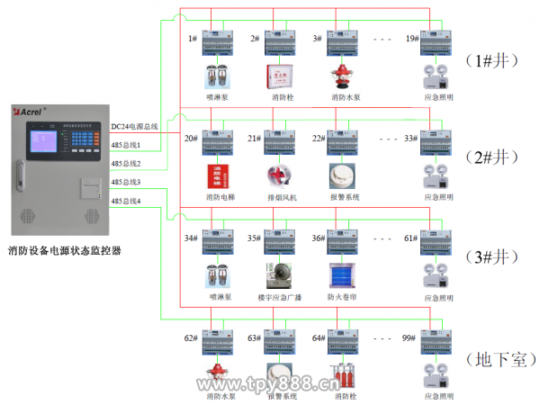 根據(jù)智能化管理要求,需要對整個商場綜合樓的消防設(shè)備供電電源的工作狀態(tài)進(jìn)行全過程連續(xù)監(jiān)測、集中控制和統(tǒng)一調(diào)度。