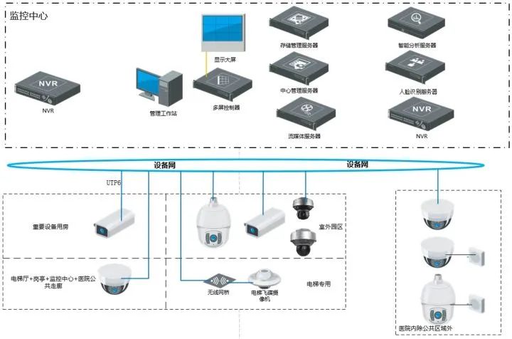 系統(tǒng)采用超五類網(wǎng)線,網(wǎng)絡(luò)式架構(gòu);醫(yī)院各出入口、候診區(qū)、內(nèi)部公共走廊采用人臉識別攝像機(jī);院區(qū)出入口、內(nèi)部公區(qū)采用人臉識別攝像機(jī);在南、北樓之間設(shè)置全景攝像機(jī),立體監(jiān)視;搶救室、護(hù)士站、ICU、手術(shù)室等特殊區(qū)域位置監(jiān)控圖像單獨存儲,可根據(jù)需求單獨管理。