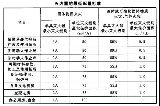 (2)滅火器的最低配置標(biāo)準(zhǔn)應(yīng)符合下表規(guī)定。