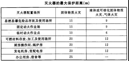 (4)滅火器的最大保護(hù)距離應(yīng)符合下表的規(guī)定。