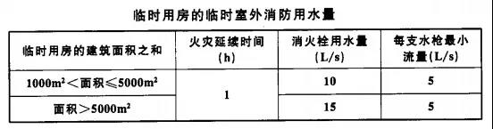 5、臨時(shí)用房的臨時(shí)室外消防用水量不應(yīng)小于下表規(guī)定。