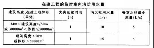 9、在建工程的臨時(shí)室內(nèi)消防用水量不應(yīng)小于下表的規(guī)定。