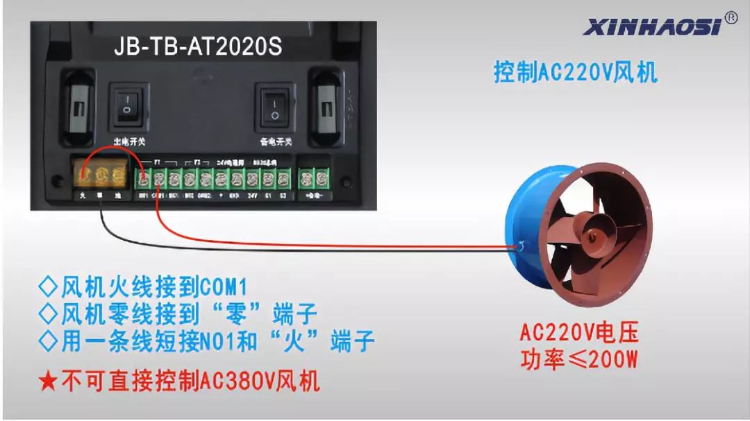 對于外控設(shè)備,我們控制器上都有無源開關(guān)量的接線端,按照下圖所示方式接線即可(其他總線制控制器請參照JB-TB-AT2020S接線)。