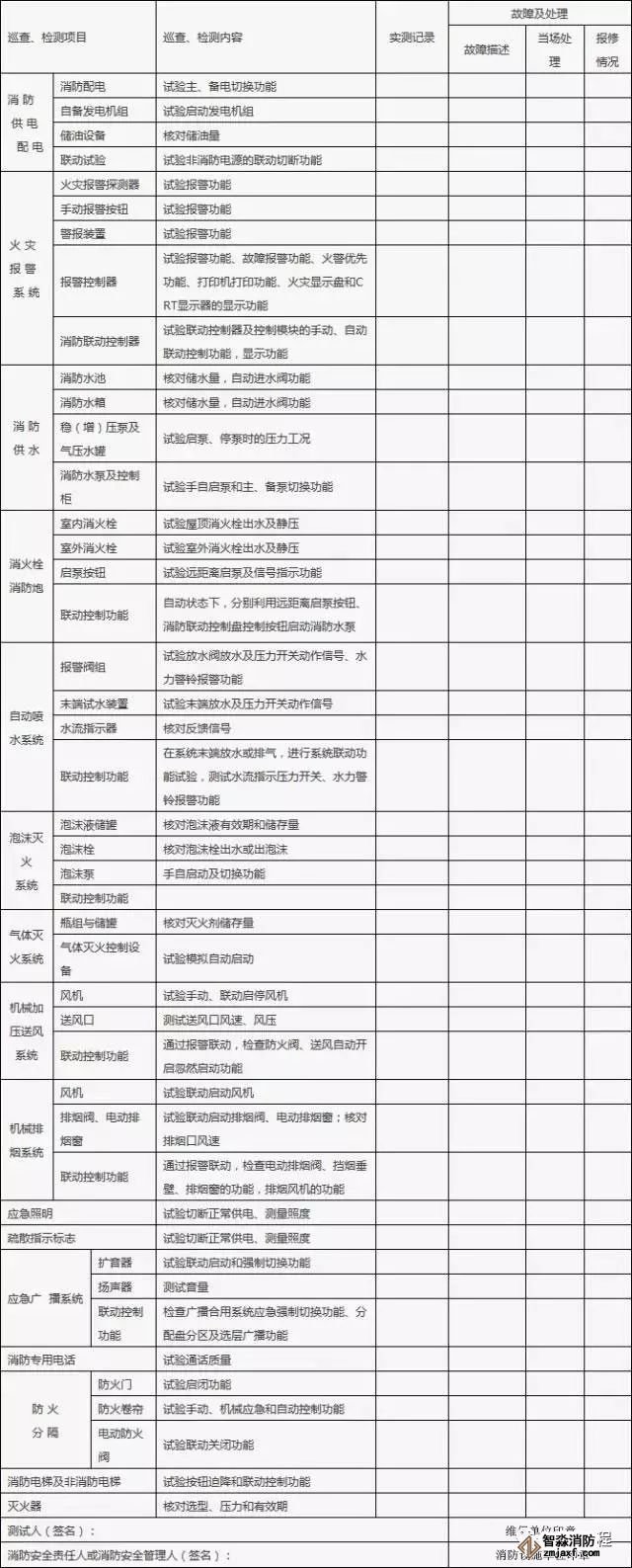 3、發(fā)現(xiàn)的問題或存在故障在“實(shí)測(cè)記錄”欄中填寫,并及時(shí)處置;當(dāng)場(chǎng)不能處置的要填報(bào)《建筑消防設(shè)施故障處理記錄》。