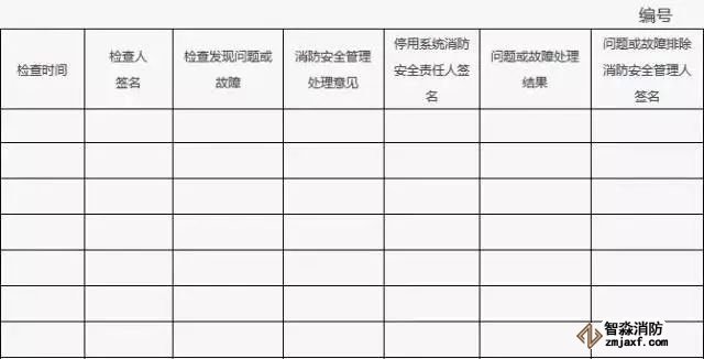 2、檢查發(fā)現(xiàn)建筑消防設(shè)施存在問題和故障的,實(shí)施檢查的人員必須向單位消防安全管理人報(bào)告,并填表。