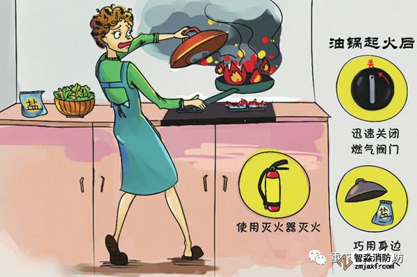 ●油鍋著火不能潑水。應(yīng)先關(guān)閉爐灶燃?xì)忾y門,然后直接蓋上鍋蓋或用濕抹布覆蓋令火窒息,還可向鍋內(nèi)放切好的蔬菜冷卻滅火。