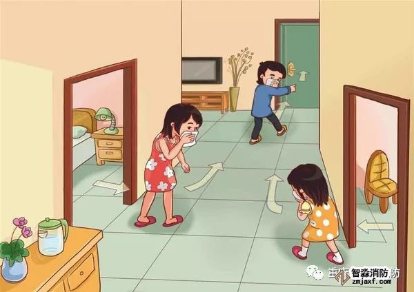 ●火災(zāi)中對人威脅最大的危險(xiǎn)是有毒煙霧??捎妹?、口罩打濕后掩口蒙鼻,防止煙霧中毒、窒息。壓低身姿貼近地面匍匐撤離。