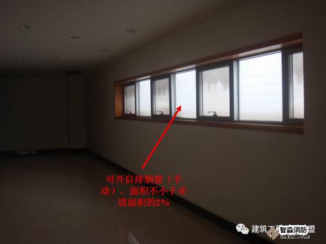 注:此處(房間和走道)的自然通風(fēng)不同于樓梯間和前室的自然通風(fēng)。雖然它們的原理相同,但此處是作為排煙措施,而樓梯間和前室是作為防煙措施。