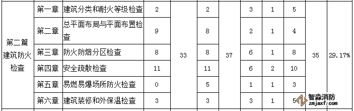 由此可看出,在消防綜合能力第二篇預(yù)習(xí)中,所占分值較高的是第四章安全疏散檢查和第三章防火防煙分區(qū)檢查,需要重點(diǎn)掌握。
