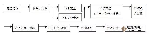 干管安裝:位于樓板下及頂層的干管,應(yīng)在結(jié)構(gòu)封頂后安裝;立管安裝必須在確定準(zhǔn)確的地面標(biāo)高后進行;支管安裝必須在墻面抹灰后進行。