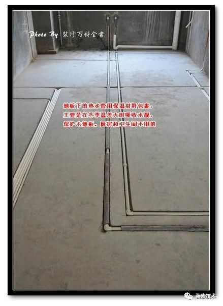 客廳下的熱水管用保溫棉包住,因為沒有包住的話容易使地板受熱變形開裂等而廚房和衛(wèi)生間的不用,因為是用水泥封起了