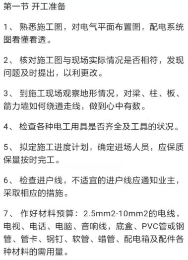 3、 熟悉掌握電氣施工規(guī)范要求。