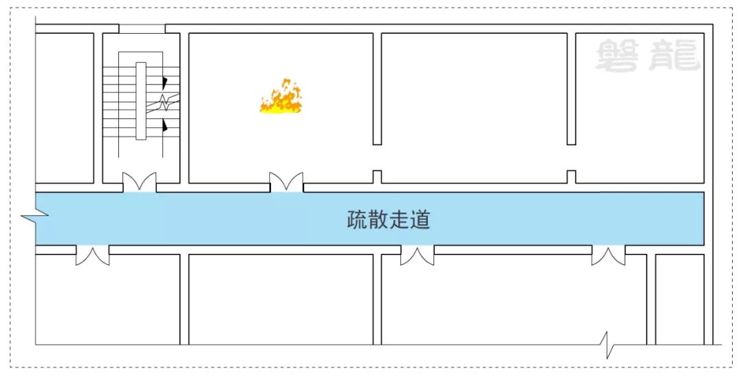 1、室內(nèi)房間屬于危險區(qū)域,一旦發(fā)生火災,人員應迅速疏散至相對安全的次危險區(qū)域(疏散走道),通過疏散走道疏散至安全出口(圖示1)。