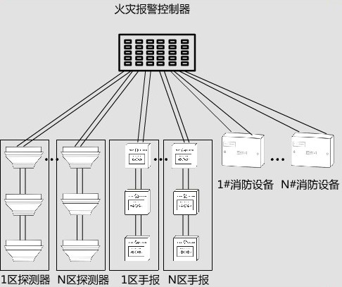 每個(gè)火災(zāi)觸發(fā)單元和控制器單獨(dú)相連接;