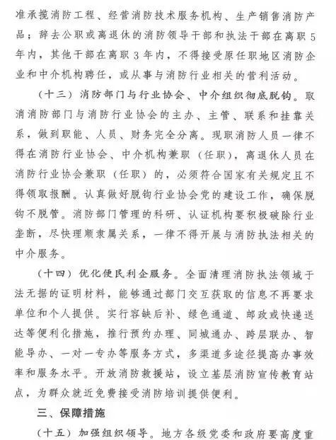 《意見》還從加強組織領導、強化協(xié)同監(jiān)管、完善法律法規(guī)、抓好督促落實4個方面提出了深化消防執(zhí)法改革的保障措施。