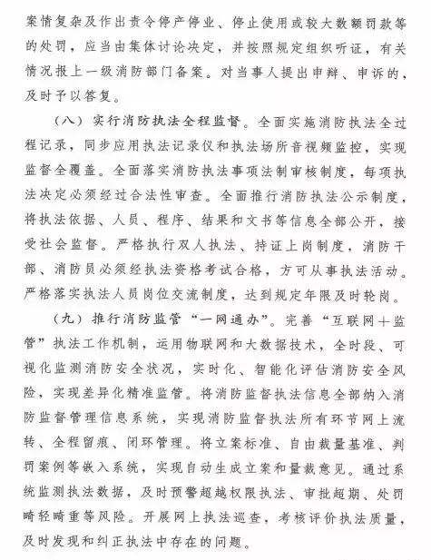 在規(guī)范消防執(zhí)法行為方面,全面實施消防執(zhí)法全過程記錄、法制審核、執(zhí)法公示制度,嚴格限制處罰自由裁量權,嚴格執(zhí)行雙人執(zhí)法、持證上崗、崗位交流制度。將消防監(jiān)督執(zhí)法信息全部納入消防監(jiān)督管理信息系統(tǒng),實現(xiàn)消防監(jiān)督執(zhí)法所有環(huán)節(jié)網(wǎng)上流轉(zhuǎn)、全程留痕、閉環(huán)管理。