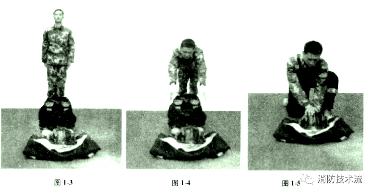 聽(tīng)到“第一名出列”的口令,消防員答“是”,跑步至起點(diǎn)線立正站好(見(jiàn)圖1-3),聽(tīng)到“準(zhǔn)備”口令后,消防員做好操作準(zhǔn)備。