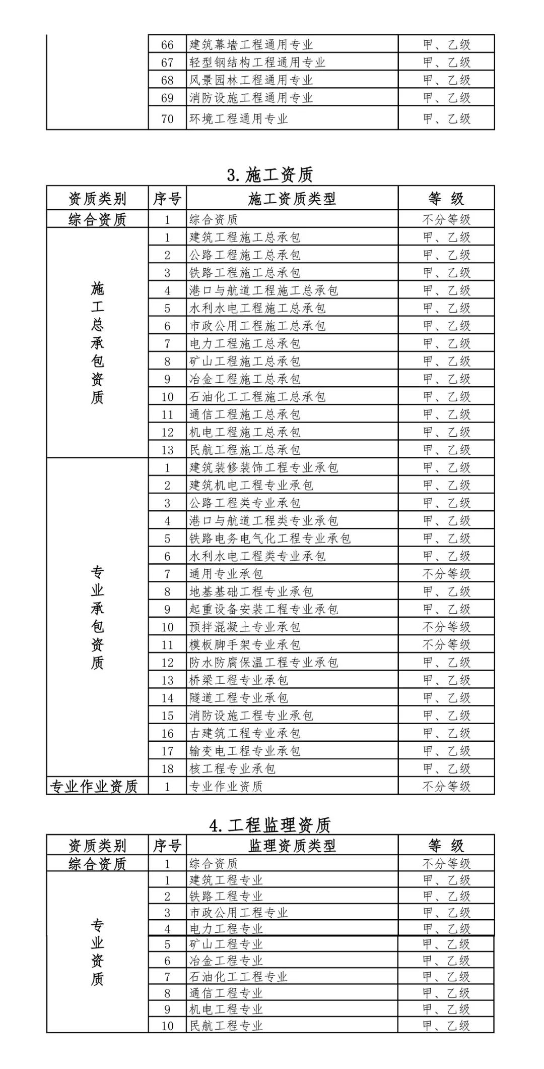 2.改革后建設(shè)工程企業(yè)資質(zhì)分類分級表
