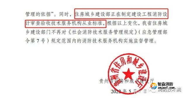 3、住建部另起爐灶在制訂新的規(guī)定。從貴州住建廳的文件中可明確知道,住建部正在制定“建設工程消防設計審查驗收技術服務機構從業(yè)標準”,也就意味著住建部門將來要使用到的消防技術服務機構,已經不是之前這種了,是一種全新的機構,既為消防審查、又為消防驗收提供技術服務,無論是從業(yè)條件還是監(jiān)管要求,都與應急管理部(消防救援部門)無關了。