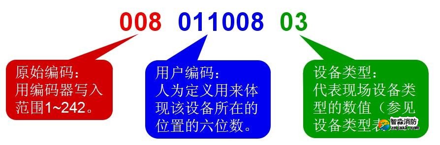 第三位對(duì)應(yīng)設(shè)備所在的區(qū)號(hào),取值范圍為0-9。如:樓棟號(hào)、單元號(hào)、防火分區(qū)等。第四、五、六位通常對(duì)應(yīng)總線制設(shè)備的原始編碼,或者其它