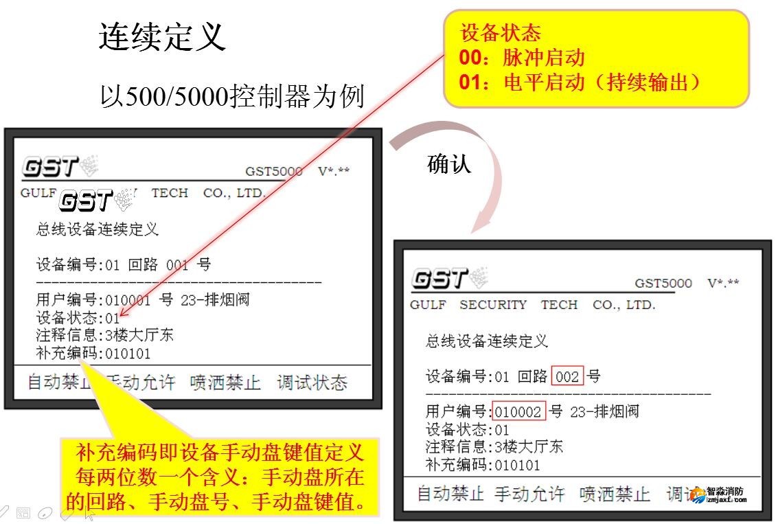 控制器所接的可編址外部設(shè)備均需進(jìn)行編碼設(shè)定,每個(gè)設(shè)備對(duì)應(yīng)一個(gè)原始編碼(一次碼,如下圖紅色數(shù)字)和一個(gè)用戶編碼(二次碼,如下