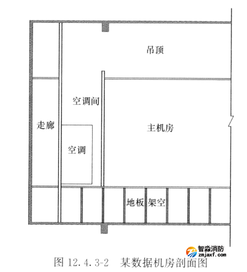 12.4.3有吊頂及夾層的防護(hù)區(qū)容積的計(jì)算需考慮吊頂及架空層(夾層),以及通過(guò)吊頂或架空層相通的隔壁空間。