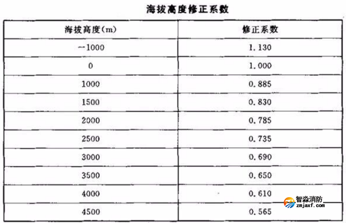 K——海拔高度修正系數(shù),可參照下表取值。