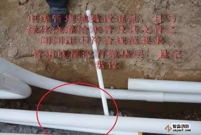 ②電纜管與綠化澆灌給水管混在一起敷設,沒有安全間距。
