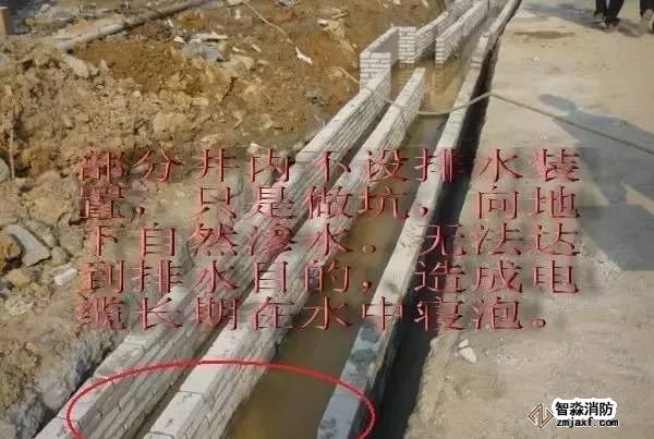 ②電纜的溝內積水嚴重,沒有設排水設施。
