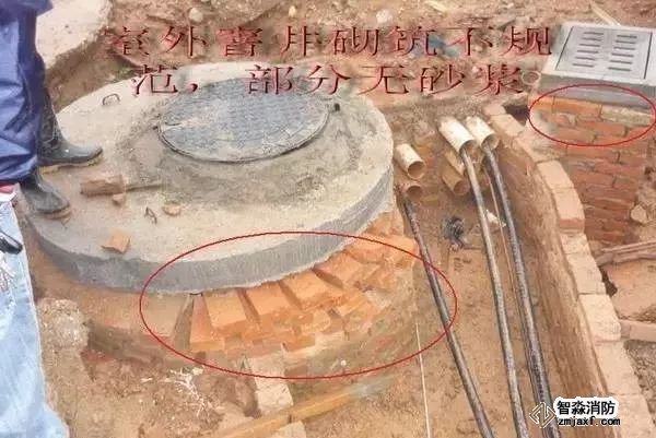 ①室外排水檢查井砌筑時沒有鋪水泥砂漿。