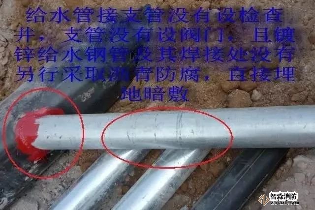 ③鍍鋅鋼管在室外埋地沒有做防腐。