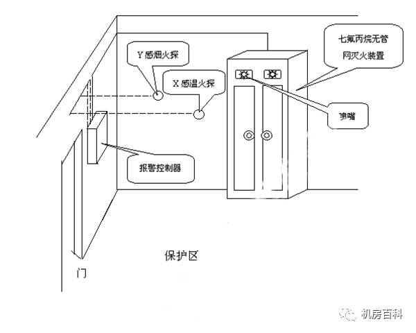 1)每個保護區(qū)的地板下、室內(nèi)空間層及吊頂天花內(nèi)需設(shè)置噴嘴、煙感探測器和溫感探測器。為了節(jié)省投資成本,保護區(qū)之間的氣體采用共享設(shè)計,減少了滅火藥劑用量,而煙感探測器和溫感探測器則仍然保持警報的功效。