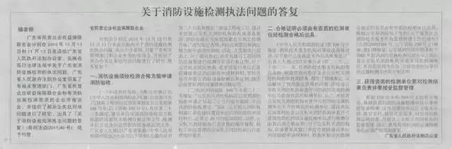2011年4月13日,廣東省人民政府法制辦公室刊登《關(guān)于消防設(shè)施檢測執(zhí)法問題的答復(fù)》,明確消防設(shè)施須經(jīng)檢測合格方能申請消防驗收,合格證明必須由有資質(zhì)的檢測單位經(jīng)檢測合格后出具,盡管《消防法》規(guī)定消防技術(shù)服務(wù)機構(gòu)必須依法取得資質(zhì),至于依什么法并未作出明確規(guī)定。